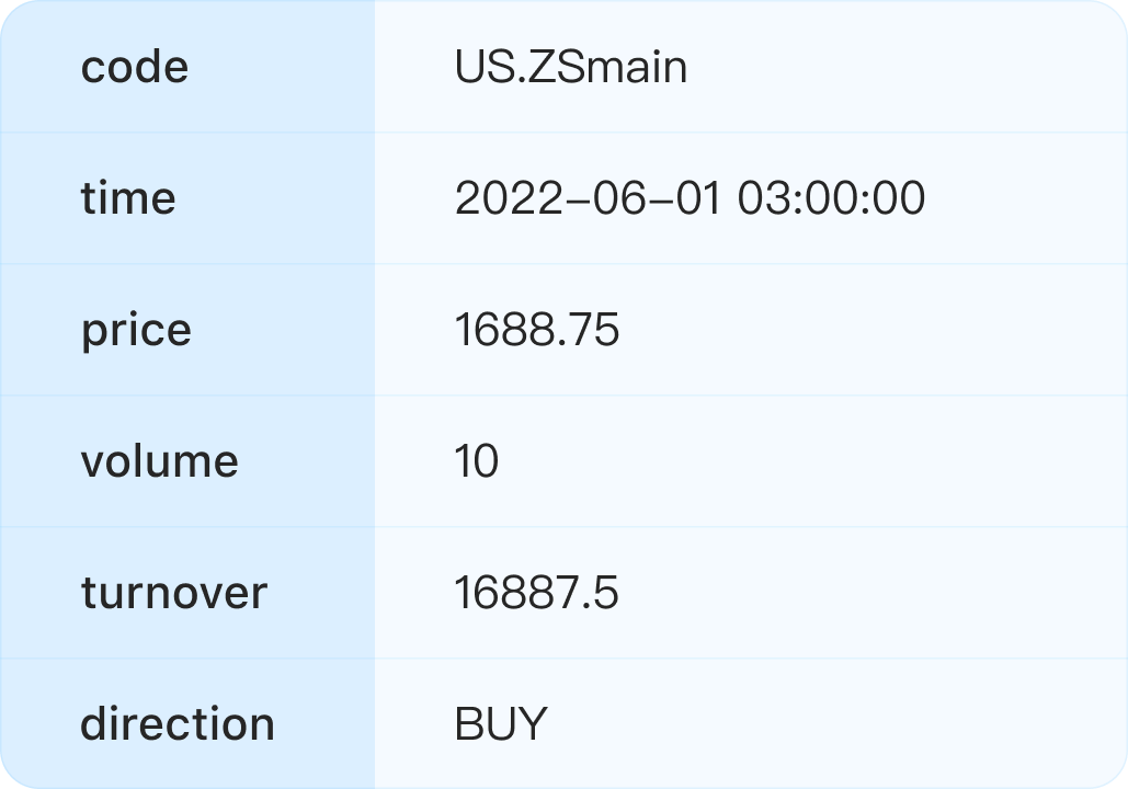Tickers updated in milliseconds