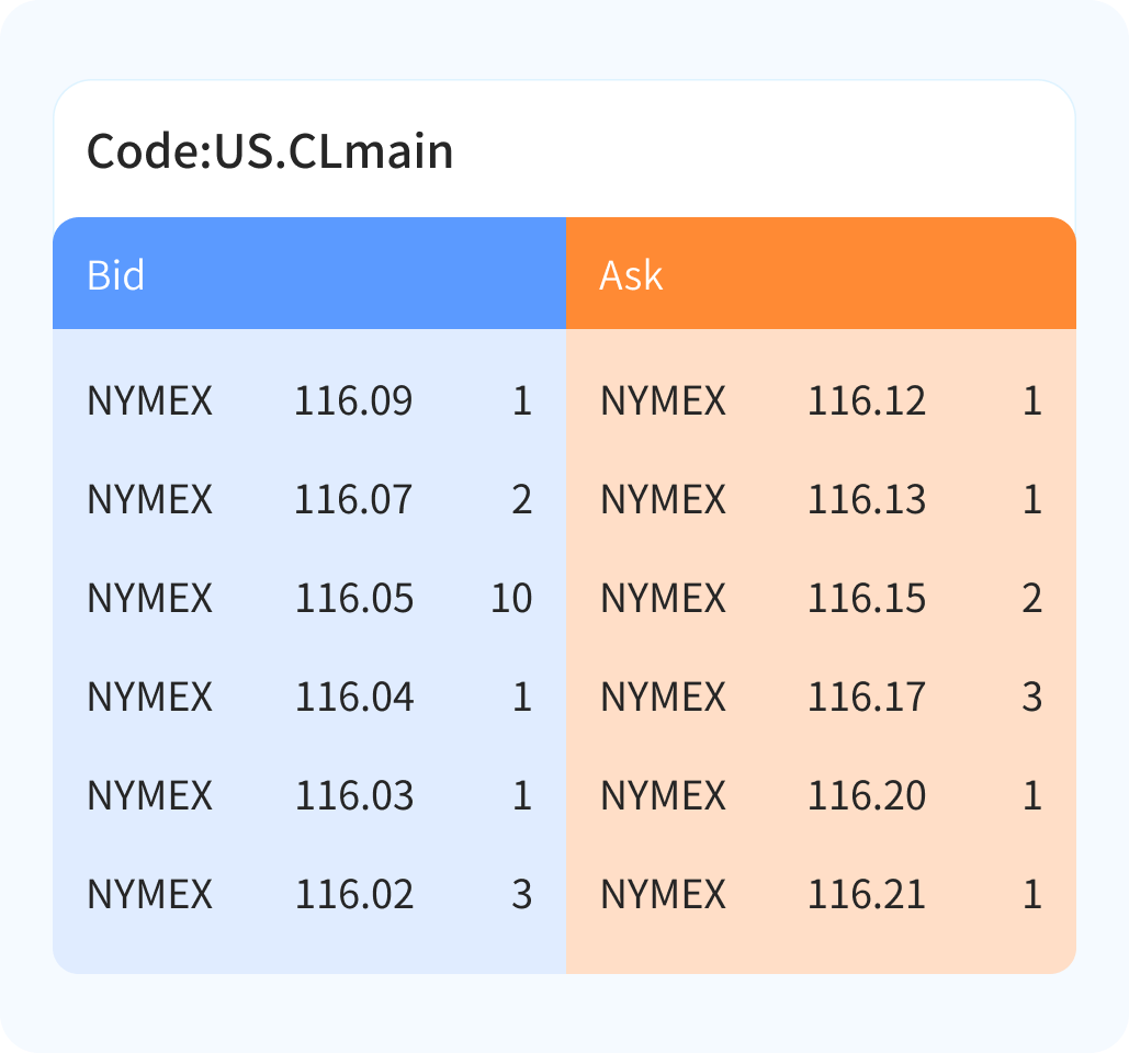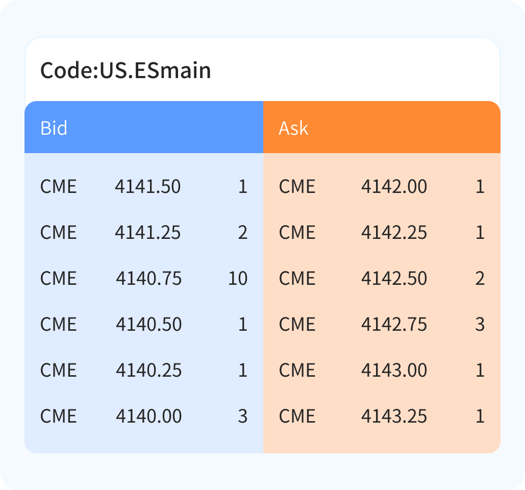Up to 40 levels of CBOT bids and asks